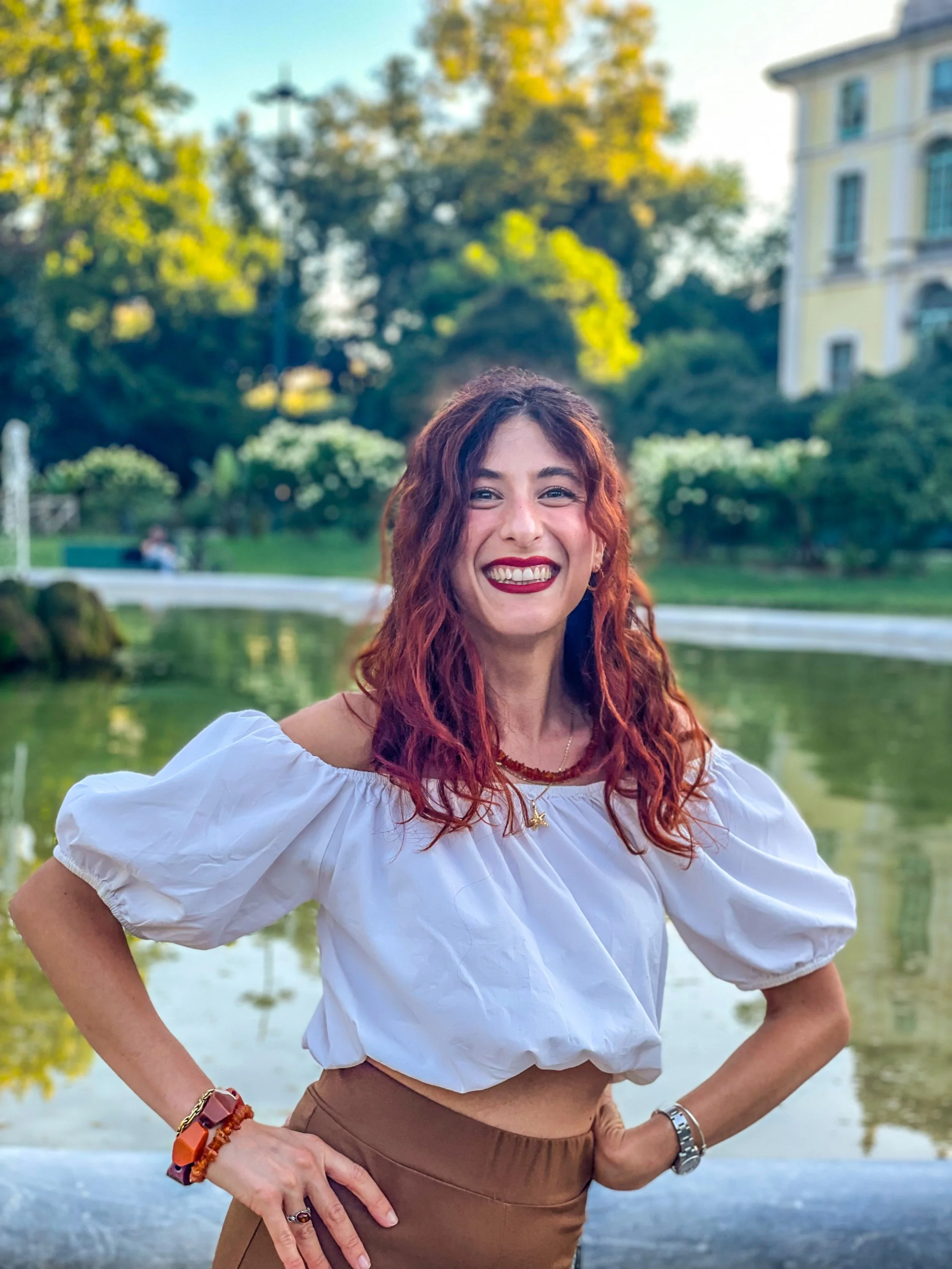 È stato amore a prima vista in una piazza a Como dove ho visto ballare sulle note di una musica swing. Solo più tardi ho scoperto un ballo chiamato Lindy Hop e così, incantata dai passi e dalla musica, ho iniziato a ballare tra lezioni, workshop e festival fino ad incontrare Valeria nell’estate 2019 e mettermi poi in gioco con il progetto delle Chorus Girls. Durante il lockdown non ho mai smesso di ballare seguendo le sue lezioni online di Solo Jazz e Charleston e da giugno 2021 sono socia fondatrice della Giggle Wiggle Swing. Negli ultimi anni ho fatto da assistenza all’insegnamento dei corsi base di Lindy Hop e Balboa e supportato l’associazione nei diversi momenti di condivisione e social dance con l’obiettivo di unire la mia scoperta passione per lo swing con la voglia di sviluppare questo progetto in continua crescita.